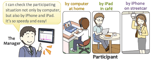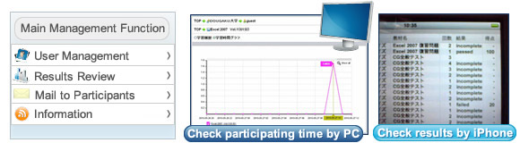 管理者不仅可以用电脑来检查受训者的听课情况,而且利用iPhone和iPad能够迅速查询,还可以详细知道受训者的理解度测试的结果。