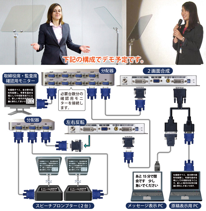 そういった企業様に向けて、弊社のスピーチプロンプターを使用した株主総会を想定したシステム構成でのデモンストレーションキャンペーンを実施いたします。