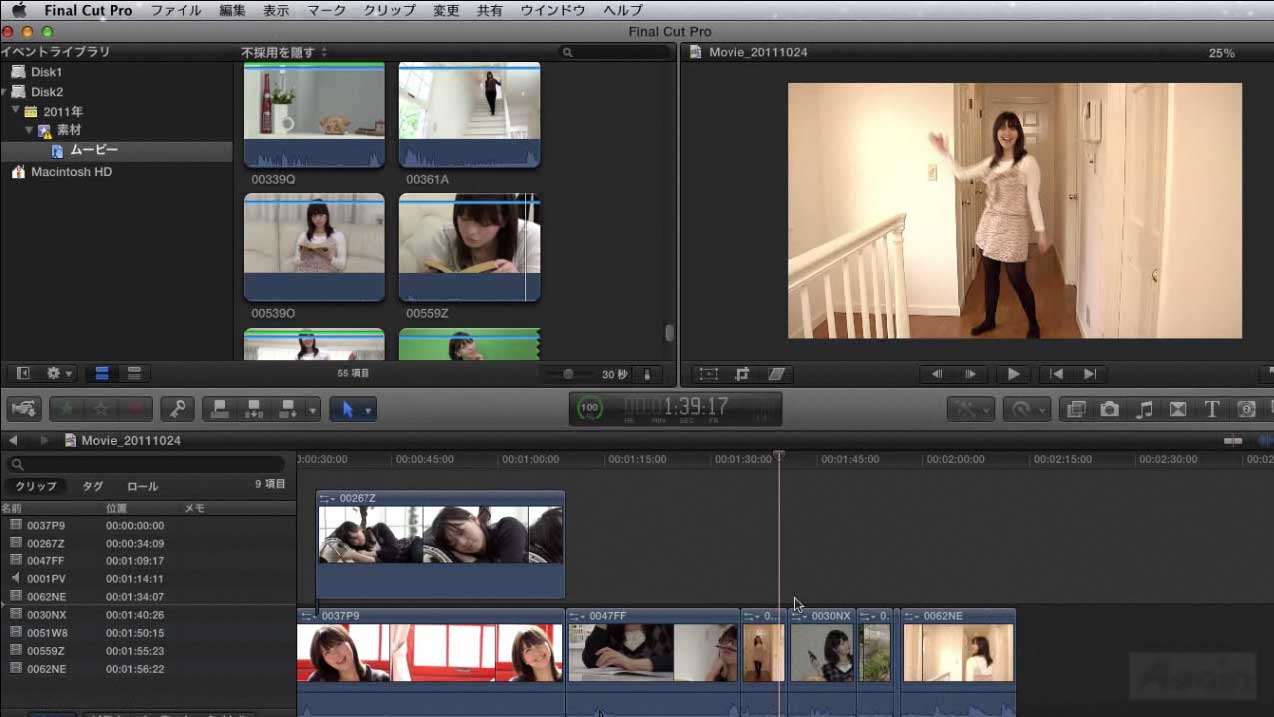 - (1)Final Cut Pro Xの基本操作 演習ファイル