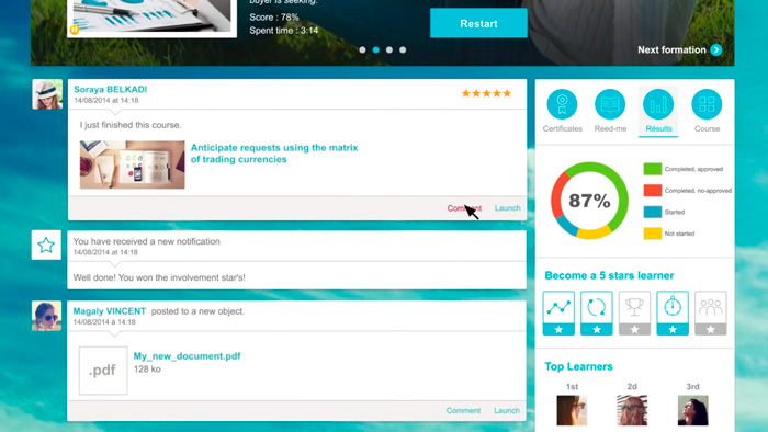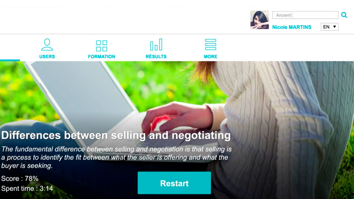 外部にコースを販売提供することができます。フランチャイズの有料研修などに最適です。 また、多くの企業がもっとも重要視するデータの機密保護(銀行取引、対テロリスト対策)にもソリューションを提供します。セキュリティは、コード監査や侵入テストに特化した外部の独立した事業体によって管理されています。厳しい水準の構造は、ISO27001に準拠した「IBMスマート・クラウド」ホスティングの技術を得て構築されます。