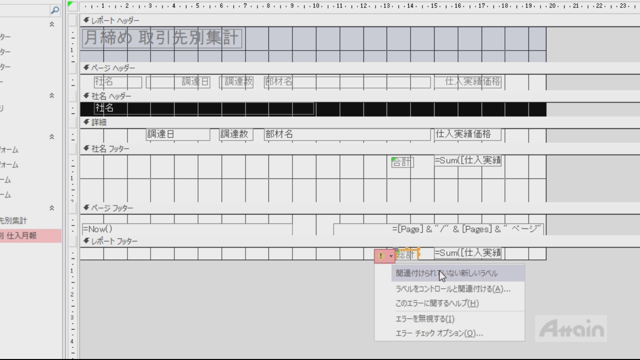 - 取引先別集計レポートの作成