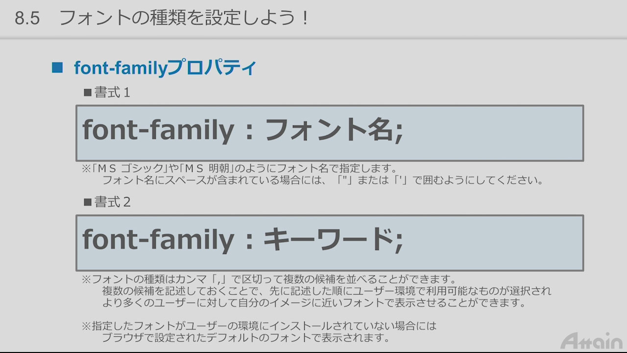 - 8.5 フォントの種類を設定しよう!