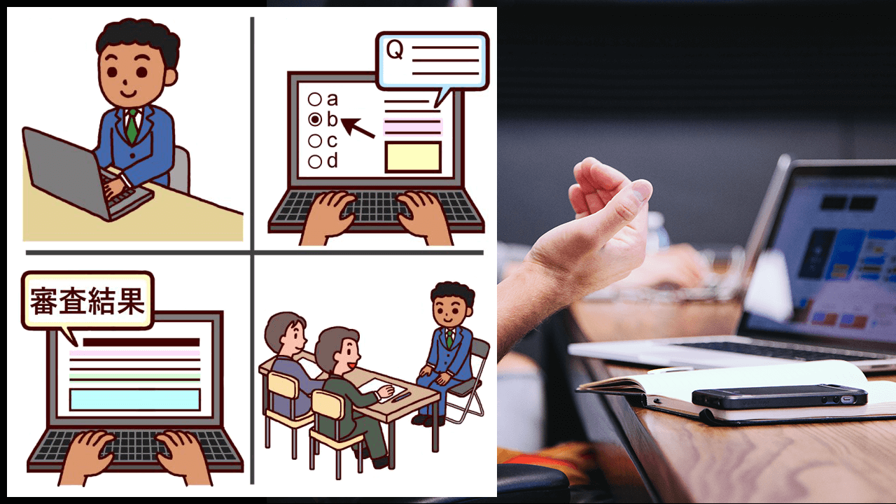 - あらかじめカメラ付きのパソコンで対面テストを録画するので、なりすましなどを防ぐことができる。