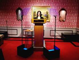 スピーチプロンプターは、原稿テキストを投影する演説用機材です。
