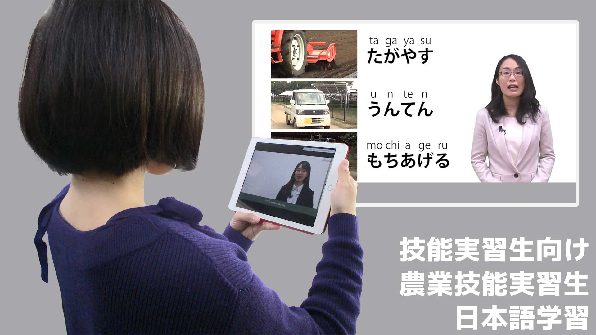 日本では外国人技能実習生を受け入れる制度が定着し、農業の技能実習生数も着実に増加する予定です。農業研修現場で技能実習生や受け入れ機関はどうやって効率よく日本語教育を実施するのが課題であることが多いでしょう。農業技能評価試験でも、講習の時間数、内容、実施場所等は運用要領等で示され、とりわけ日本語教育が重要視されています。日本語学校に通わせるか日本語講師を研修現場に出張に来てもらうかなどの対策はありますが、どれもかなりコストがかかります。この問題を解決するためには、アテインは日本語教材をiPad載せるレンタルサービルを提供いたします。