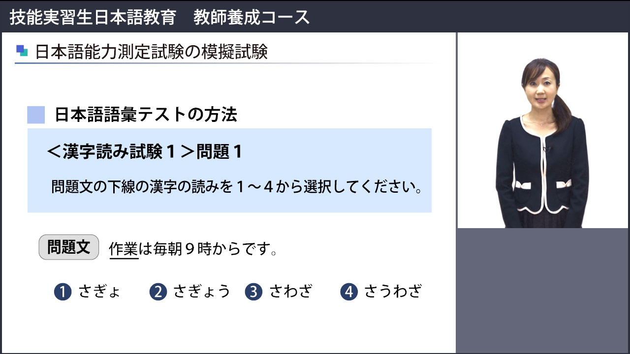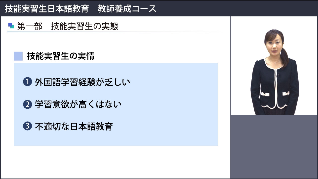 本教材は、技能実習生の日本語教育を担当する教師のための養成コースです。技能実習生の日本語学習者は、学習環境、学習意欲、学習能力などが留学生とは全く異なるため、それらを充分に理解して教育に当たる必要があります。 本教材を学習し、これらの学習者の指導のための知識や技術としてもらうのが目的です。