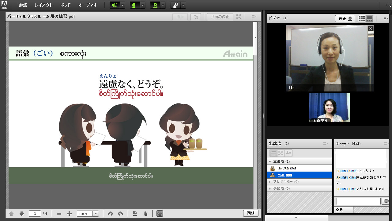 3「日本語レッスン」とは、アテインのバーチャルクラスのことで、