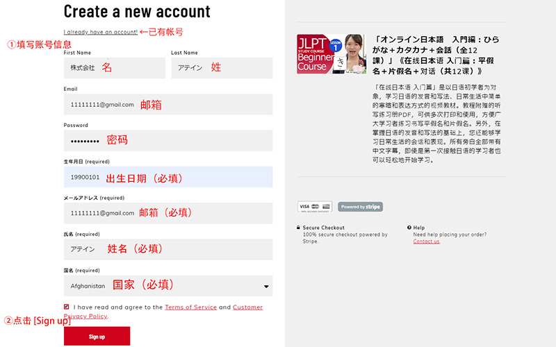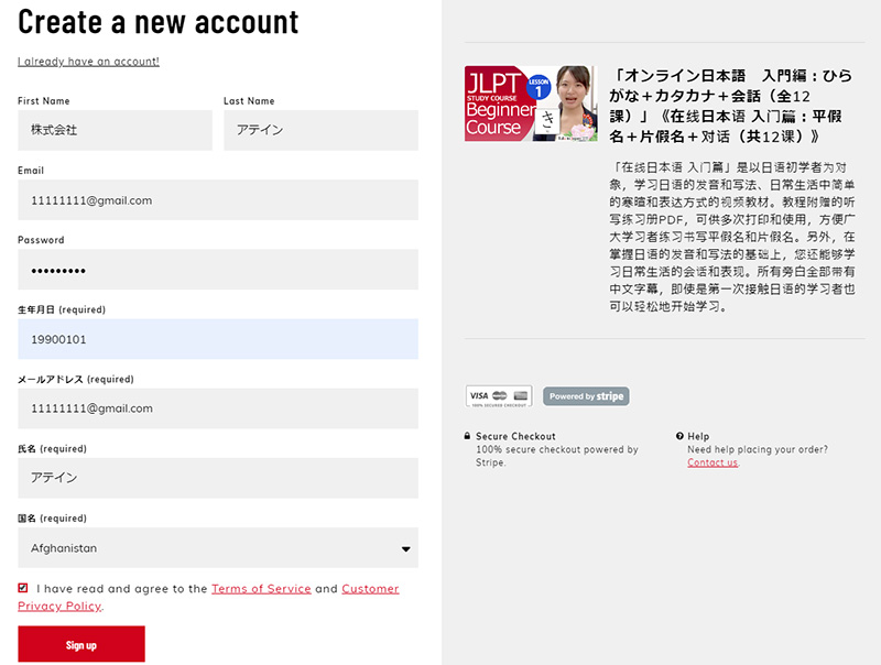 7勾选页面下方的 「I have read and agree to the Terms of Service and Customer Privacy Policy.」,点击「Sign up」完成注册,并转跳至购物页面。ページ下部の 「I have read and agree to the Terms of Service and Customer Privacy Policy.」の前にチェックを入れた上に、「Sign up」をクリックするとアカウント作成が完了し、購入を完了するページに遷移します。