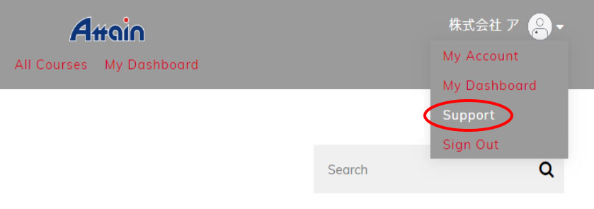 4You can also contact us from "Contact us" (in red) on the right side of the account creation page that is displayed when purchasing products. Or you can contact us via email:attain-thinkific@attainj.co.jp