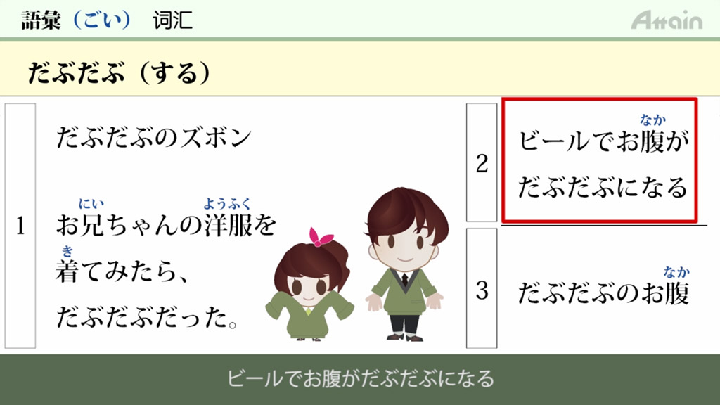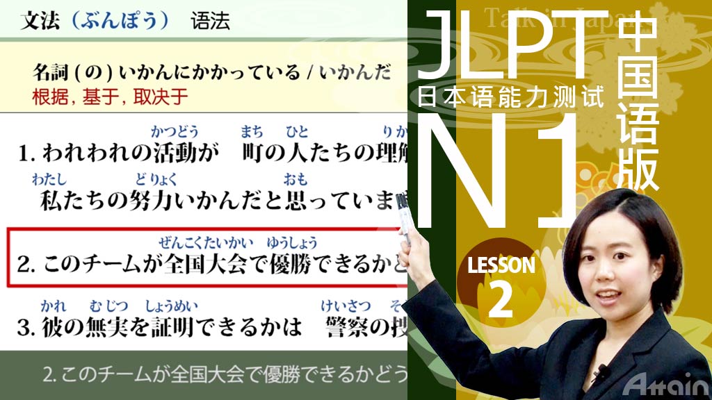 能够学习日本语能力测试N1级相应的词汇、表达、语法。在实际的会话中,会应用到N1的知识,不仅有助于日本语能力测试的准备,还能够提高用日语交流的能力。旁白全部有英语字幕,使广大的外国人日语学习者能够轻松地学习。而且,为了能够方便没有使用汉字的国家的学习者,本课程所有的汉字上都标上了平假名。