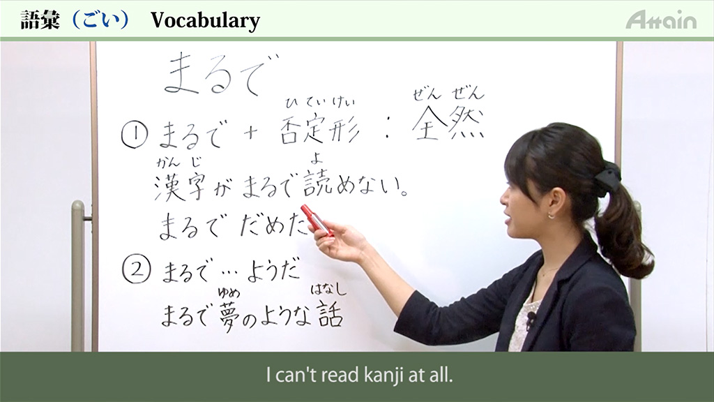 In the N2 CourseYou can study vocabulary, grammar, reading comprehension that corresponds to the JLPT N2 level. The Japanese of N2 level is applied in actual conversations, so this course is useful for JLPT preparation and advancing your Japanese communication proficiency.