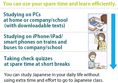 They can be offered so that the learners can make the most use of their spare time to improve not only their Japanese but also their skills required in business scenes as Japanese business manners and how to use Microsoft Office software.